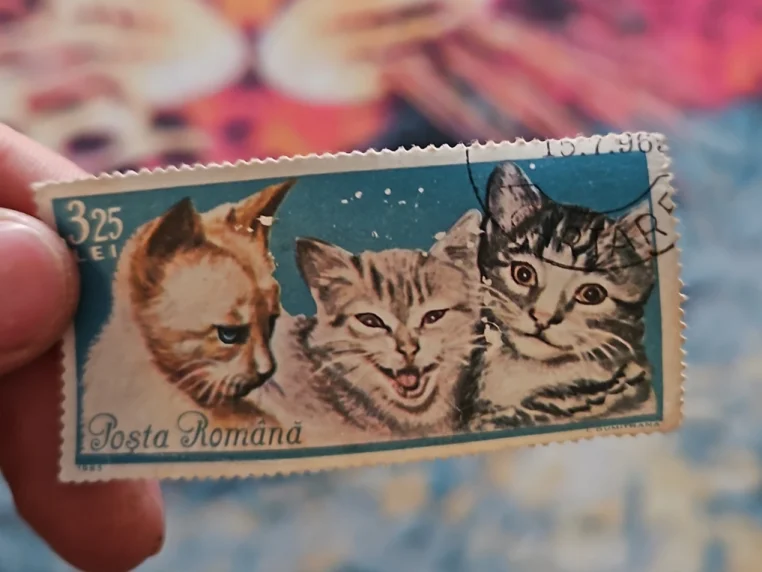 I've also found a bunch of stamps, so I've started to complete my great-grandfathers stamp book with all of these old stamps, they are from all times, even the soviet era and are from all over the world: Romania, Russia, Dubai, Germany. And I've found a few with some very cutee cate images! ^-^What I've worked